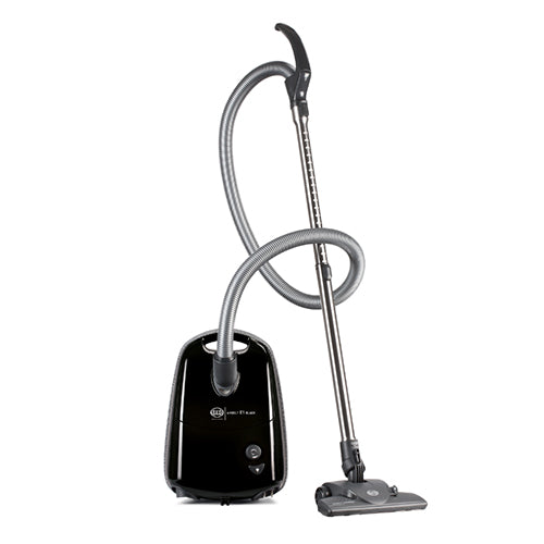 SEBO AIRBELT E1 Kombi Black canister vacuum comes with a Kombi Nozzle suitable for cleaning hard floors and delicate rugs. Also included is a crevice tool, upholstery nozzle, and dusting brush, and it comes equipped with a set of filters and a single filter bag.