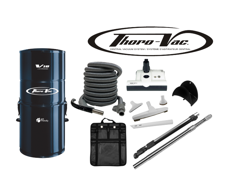 The Thoro-Vac Model V10 is a pet friendly unit. With its high quality metal body, baked enamel finish, quiet construction, user friendly body latches, pail handles and permanent body gasket. It is sure to be the best built central vacuum on the market. The V10 uses the disposable bag option only for optimized cleanliness.