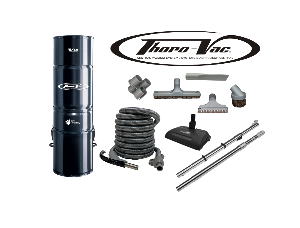 The Thoro-Vac Model V18 is a pet friendly unit. With its high quality metal body, baked enamel finish, quiet construction, user friendly body latches, pail handles and permanent body gasket. It is sure to be the best built central vacuum on the market. The V18 can either use the self clean filter, or disposable bag option for optimized cleanliness.